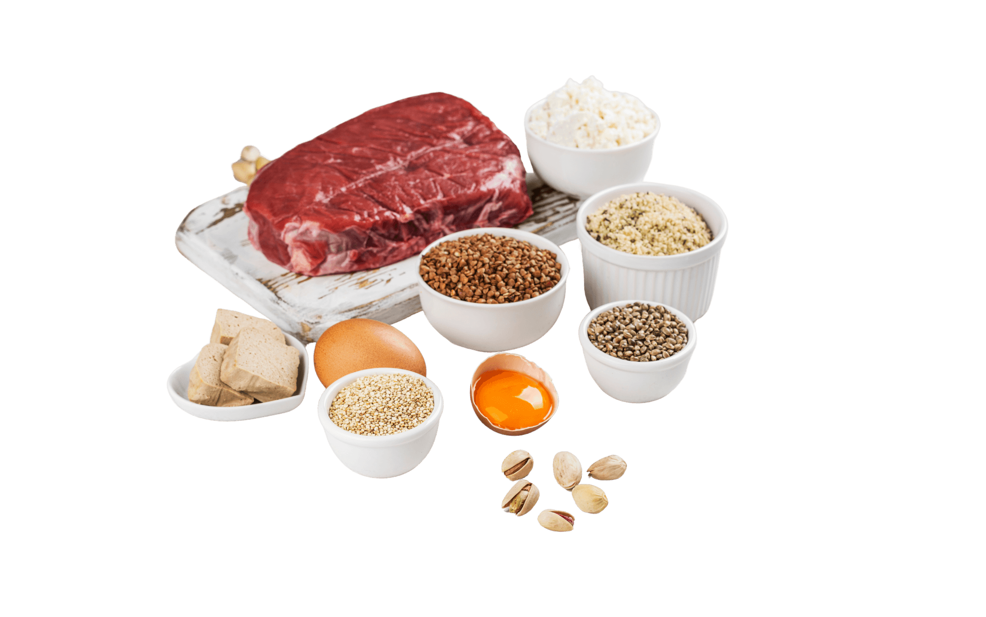 Aminosyror finns i en mängd olika livsmedel, bland annat kött, fisk, ägg, baljväxter och nötter.