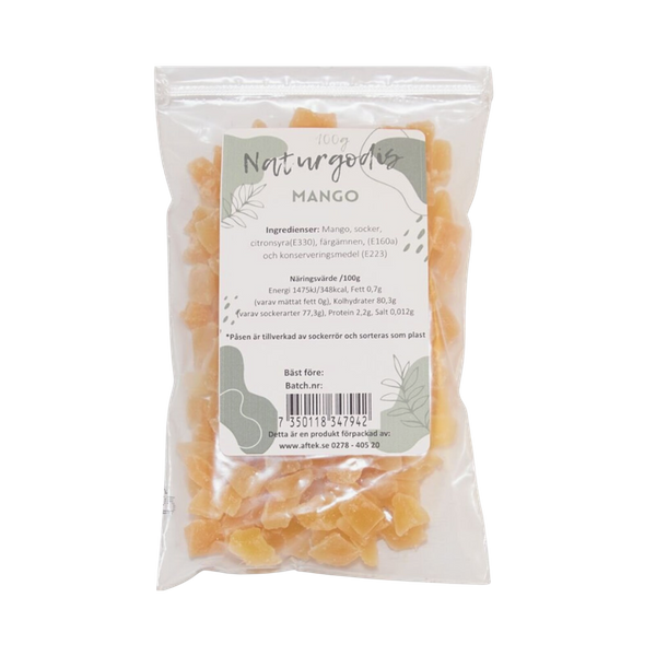 Aftek Mango i Bitar är gjorda på torkad mango och fungerar perfekt som ett frukt snack eller även att tillsätta i granola!