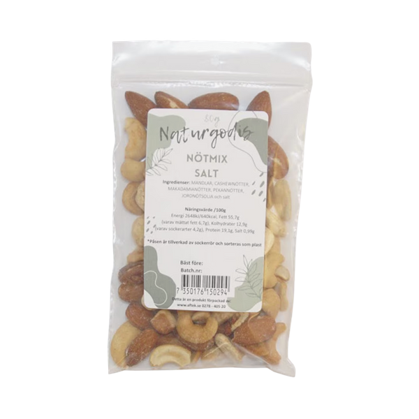 Aftek Nötmix Saltad är ett utmärkt snack att ha både vid fredagsmyset men även när du är sugen på ett snabbt mellanmål! Mixen innehåller b.la. mandlar och cashewnötter med flera.