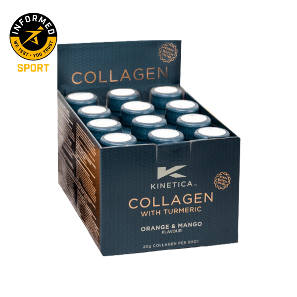 Kinetica Collagen Shot Turmeric består av ett 12 pack shots varav en individuell shot är 60 ml.