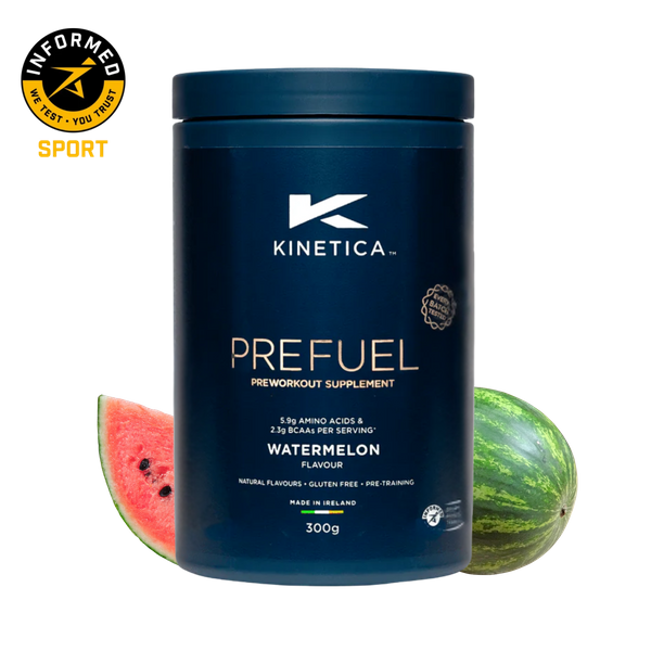 Kinetica Pre Fuel med smak av Watermelon är utvecklad för att ge dig en kraftfull start inför varje träningspass. Med BCAA (grenade aminosyror), viktiga vitaminer, mineraler och koffein får du både ökad prestation och skärpt fokus.