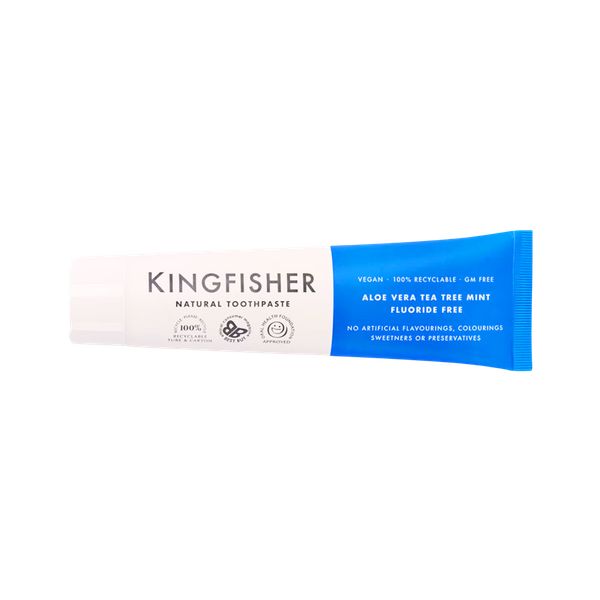 Aloe & Tea Tree Mint från Kingfisher är en fluorfri tandkräm som skonsamt rengör dina tänder och har en behaglig fräsch mintsmak!