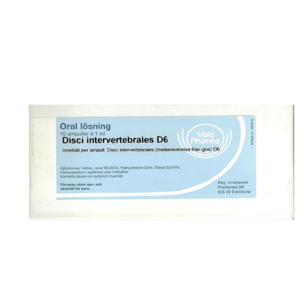 Vala Pharma Disci Intervertebrales D6 är ett medel i form av drickampuller.