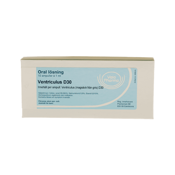 Ventriculus D30 är ett medel i form av drickampuller 10 st.